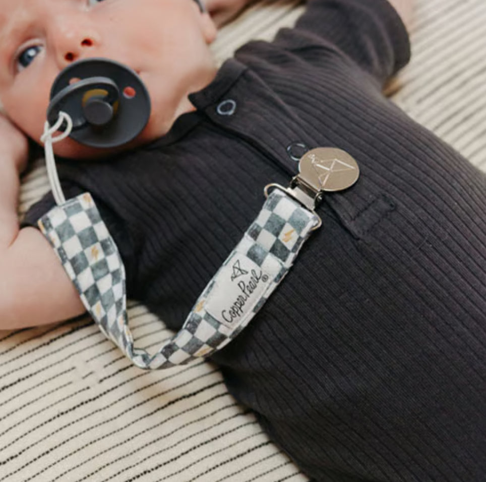 A chic way to keep baby's pacifier close at hand. Offering the ultimate blend of fashion and function, our unique Binky Clip features a premium knit strap lined with absorbent fleece to help soak up drool. Simply attach baby's pacifier or teether to one end, then fasten the stainless steel clip to clothing, blankets or baby gear. No more floor drops or pacifier pick-ups!