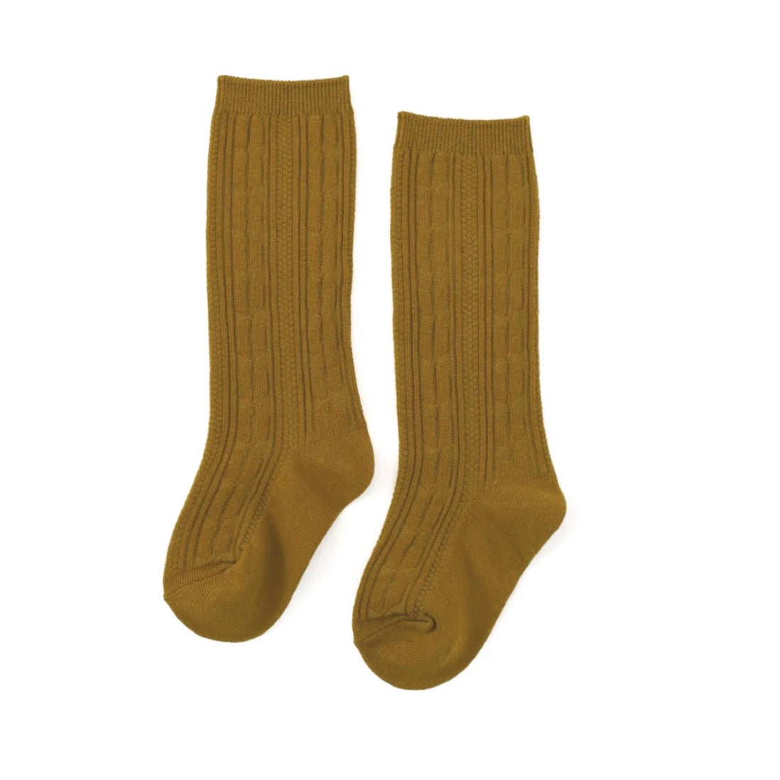 Bronze Cable Knit Knee High Socks for babies, toddlers and kids! A gorgeous golden hue that will compliment all of their spring/fall neutral outfits.